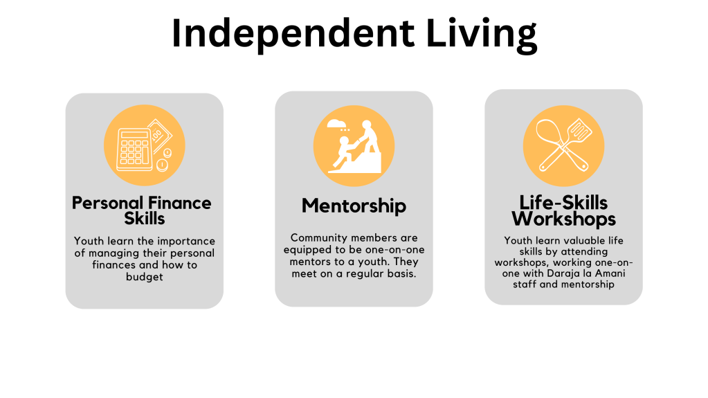 - Assistance with information to access healthcare, apply for an ID, get a birth certificate, register for a KRA pin, and other services necessary for young Kenyan adults